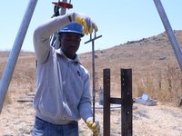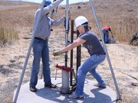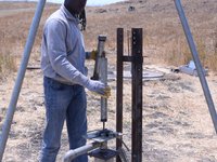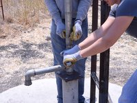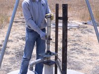 Slowly pull the cylinder off of the pump rod, exposing the traveling valve and foot valve.