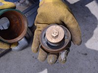 Using two pipe wrenches, remove the end cap from the cylinder.