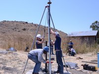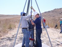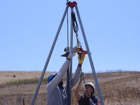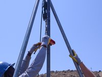 Remove the first section of the riser main by lifting it straight up, while supporting the top of the section and keeping the pipe within the support slot on the top of the tripod.