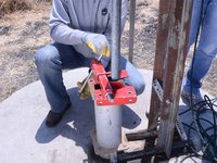 Once the riser main has reached the block and tackle, tighten the base clamp against the riser main.