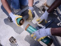 Using two pipe wrenches, unscrew the cylinder from the riser main.