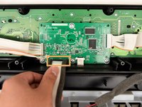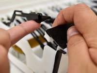 Grasp the white ribbon lined with foam and pull up to remove from the main circuit board.