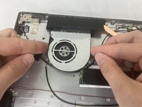 Use a Phillips #1 screwdriver to remove the two 4.2 mm screws that secure the fan.