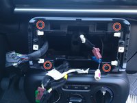 ...Here is how the the center of the dashboard should look without the radio panel installed. To free up the space inside the radio compartment entirely , you'll need remove the support that hold the central unit in place, removing five screws.