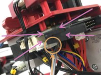 On the hot end/probe side, route the wires behind the hot end and plug into the probe.