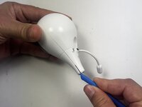 Place the end of the opening tool between the seams of the front and back of the camera and slide it around the perimeter to release the clips that connect them.