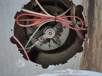 Fit the motor into the space, hooking the two screws into their holes. Its helpful to have a second person hold the motor in place as you fit the third screw from inside the oven, and tighten up,