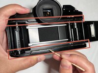 This guide will show you how to replace the degraded light seals in a Canon A-1 camera to restore image clarity and prevent light leaks. Before beginning the guide, make sure to take the batteries out of the camera and power it off.