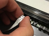 Locate the small plug where the white strip of cable is connected to.