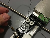 Flip the sensor bar over and unwind the belt from the gear system.