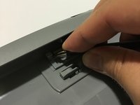 Once the adhesive strip is sliced through, the plastic bar that is attached should release. Set aside the plastic bar.