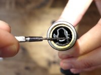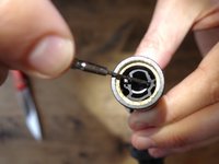 Use a set of tweezers (or a pointy metallic object, I used a tiny screwdriver) and gently pull in a circular fashion not to destroy the metal girder.