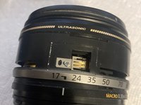 As with all canon EF style lenses, the first step is to remove the two screws holding the terminals to the lens.
