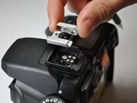 Use a metal spudger or opening tool to gently lift the hotshoe plate and slide it off.