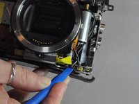 In order to complete the replacement, the front, back, and top coverings of the camera must be disassembled in order to access the shutter button.