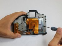 Remove each 6.3 mm screw on either side of the viewfinder using a Phillips #0 screwdriver.