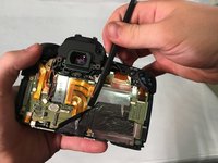 Remove the two 5 mm Phillips #000 head screws that near the viewfinder.