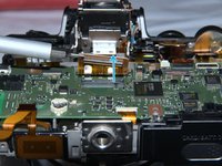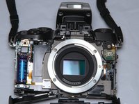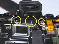 Remove 3 screws near the EVF. REMEMBER lengths and hole positions. The center one is longer. The left holes.