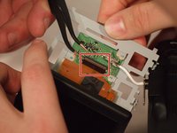 Now that the ribbon is disconnected, remove the board carefully and place it aside. This piece still works so leave it attached to camera.