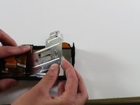 This replacement guide shows how to remove the camera's LCD screen. The back panel must be removed before hand.