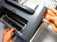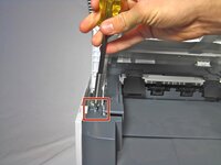 Gently unhook the right side paneling (as looking at the printer's front face) from the printer.