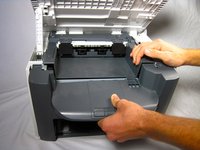 To remove the bottom part of the paneling gently lay the printer on its back.