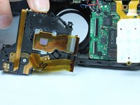 Place the LCD screen on the camera and align the ribbon underneath the open ribbon flap. Close the ribbon flap onto the ribbon. (picture 3)