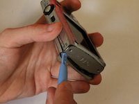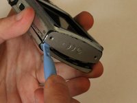 • Pry apart the camera casing using the plastic opening tool tool provided. Once the casing has begun to separate pull the two sides apart with your hands.