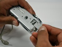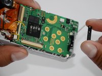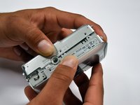 Remove the 4mm Phillips #00 screw that is located on the left side of the camera, if the display screen is facing you.