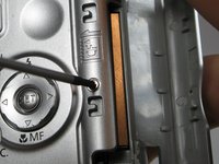 Remove the 3.4mm screw inside a deep hole on the back copper panel beneath the circular mode switcher.
