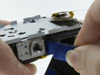 In order to replace the door, you must first remove the back plate off the camera. Use this guide to do so.