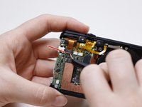 Using the tweezers, gently lift the flap that is securing the ribbon cable to the motherboard.