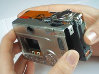 Remove one 1.6mm Phillips screw from the above the CF open button on back of the camera.