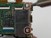 Unscrew two Phillips screws above the LCD using a #0 Phillips screwdriver.