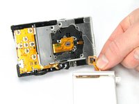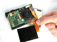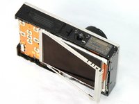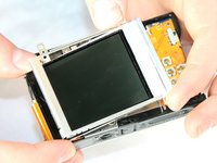 Pull up the metal frame surrounding the LCD screen starting at the side of the camera.