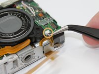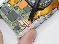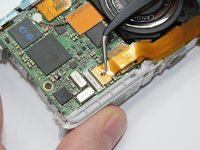 Using tweezers, disconnect the small ribbon cable below the flash assembly from the No Fuss Connector by simply pulling the ribbon cable straight out.