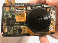 Using the plastic spudger, pry the golden film on the front face of the camera off of the microchip.