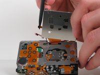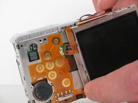 Hold down on the camera's metal casing with one hand. Using your other hand, lift the LCD screen straight up, making sure the LCD screen's ribbon cable slides free of metal casing.