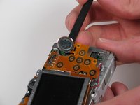 Rotate the speaker so that it unlatches from the camera frame. Then use the flat end of the spudger to lift up the speaker from the rest of the camera.