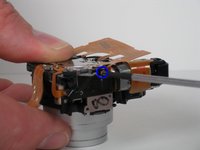 Remove the one 2.6 mm Phillips screw on the top of the lens assembly holding the viewer in place.