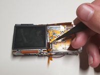 Use the tweezers to pull up on the piece of black plastic connected to the ribbon to unhook and remove the ribbon connected to the screen.