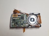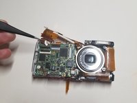 Turn the camera over to the side with the lens and remove the ribbon on the left side.