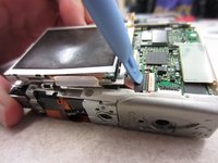 • Gently press the pry tool under the ribbon gate and lift up to free the ribbon connecting the LCD to the circuit board.