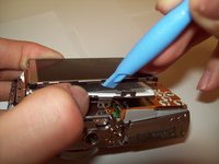 Remove the two screws that connect the LCD and backlight to the main body of the camera.