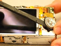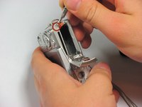 Remove the 2.75 mm Phillips #00 under the A/V OUT DIGITAL flap on the side of the wrist strap.