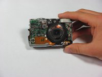 Gently pull the front cover straight out from the camera. This will expose the wiring on the front of the camera.