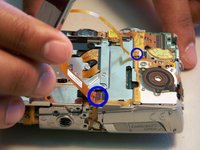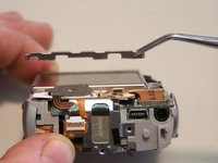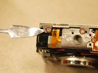 Remove the 2.75 mm Phillips #00 under the A/V OUT DIGITAL flap on the side of the wrist strap.