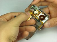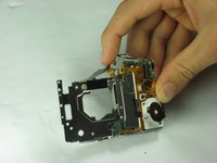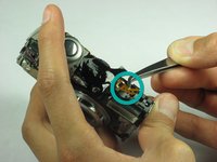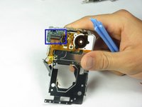 Use a set of tweezers to remove the speaker located at the top of the camera on the flash unit.