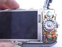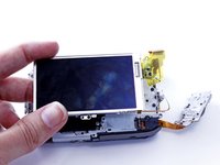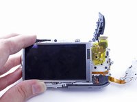 The LCD screen is now removed and can be replaced or set aside to access other camera components.