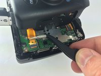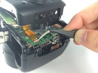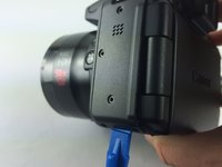 Use the plastic opening tool to carefully start lifting up the camera's left-side panel. Then use your fingers to pry off the rest.